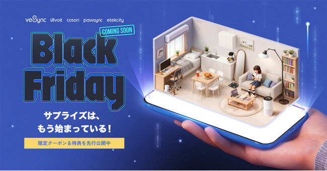 アメリカ発の小型家電メーカーVeSync(ウィーシンク)の日本法人、Vesync Japan株式会社(本社:東京都千代田区、以下VeSync)は、2025年11月14日(金)より「VeSyncブラックフライデー2025」の事前予約キャンペーンを開始しました。