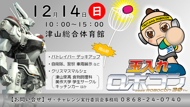 ザ・チャレンジ実行委員会(岡山県津山市)は、2025年12月14日に津山総合体育館(津山市)にて、「第30回記念大会つやまロボットコンテスト」と開催いたします。