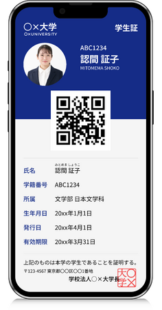 偽造されにくい:QRコード・NFC・デジタル署名で本人確認が安全に行える。即時失効・更新:退学・休学・資格更新の情報がリアルタイムに反映され、常に最新の身分証明として使える。