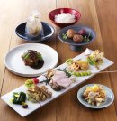 がんばるネギのかんずり漬け/田上名物 乾燥筍メンマ/新潟ポークのジャンボンブラン エストラゴン風味のタルタルソース添え/田上町の銀杏串/サツマイモのレモンビネガー煮/がんばるネギのヴィネグレット
