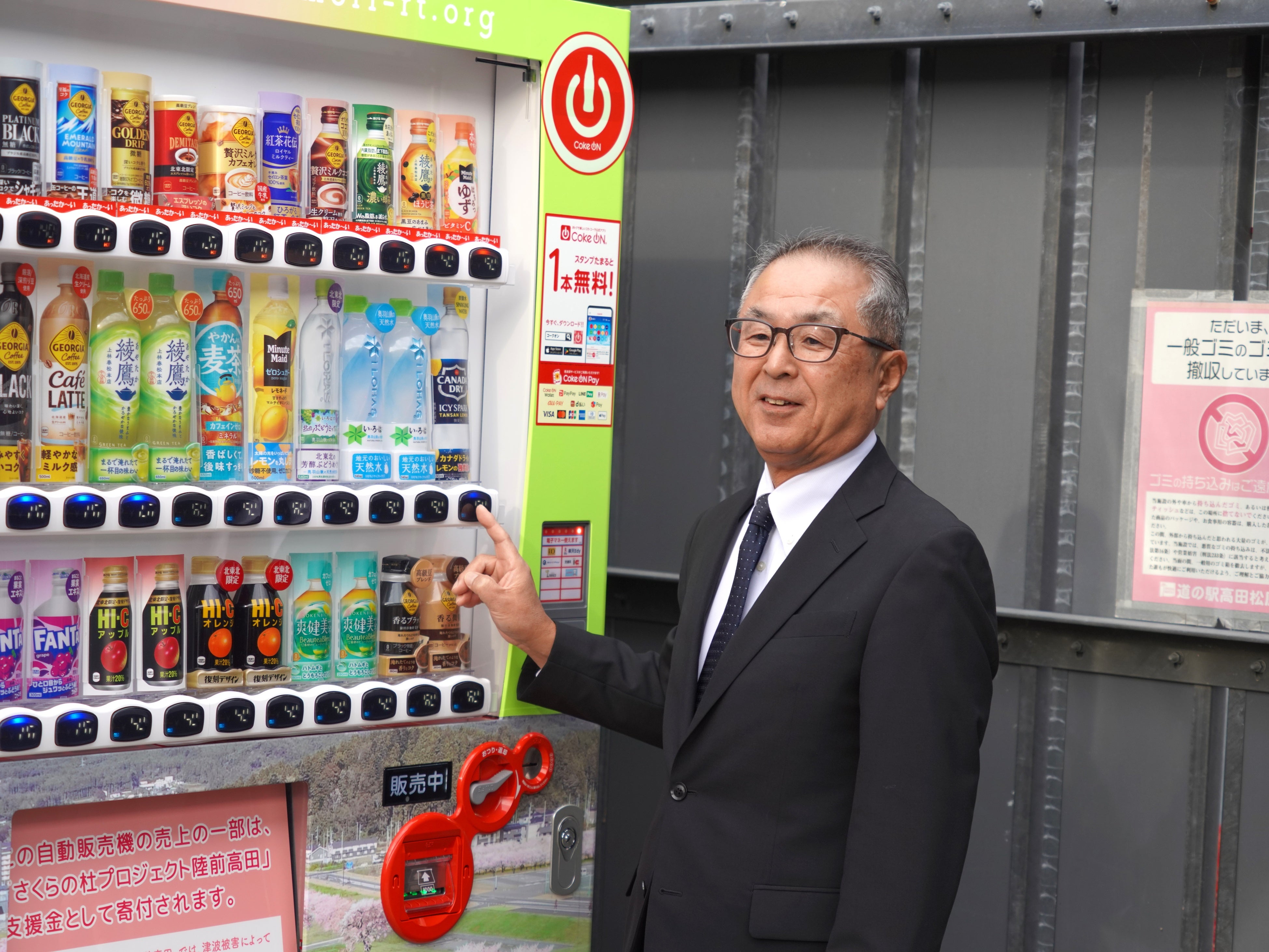 「私自身、震災前は大船渡営業所の所長として、この陸前高田市も担当させていただいておりました。海岸沿いに咲き誇る桜の景色は本当に美しく、その風景が失われてしまったときの寂しさは、今も忘れることができません。この自動販売機が、プロジェクトをより多くの方に知っていただくきっかけとなり、再びこの地に桜の花が咲き誇る日をともに迎えられることを願っております。」