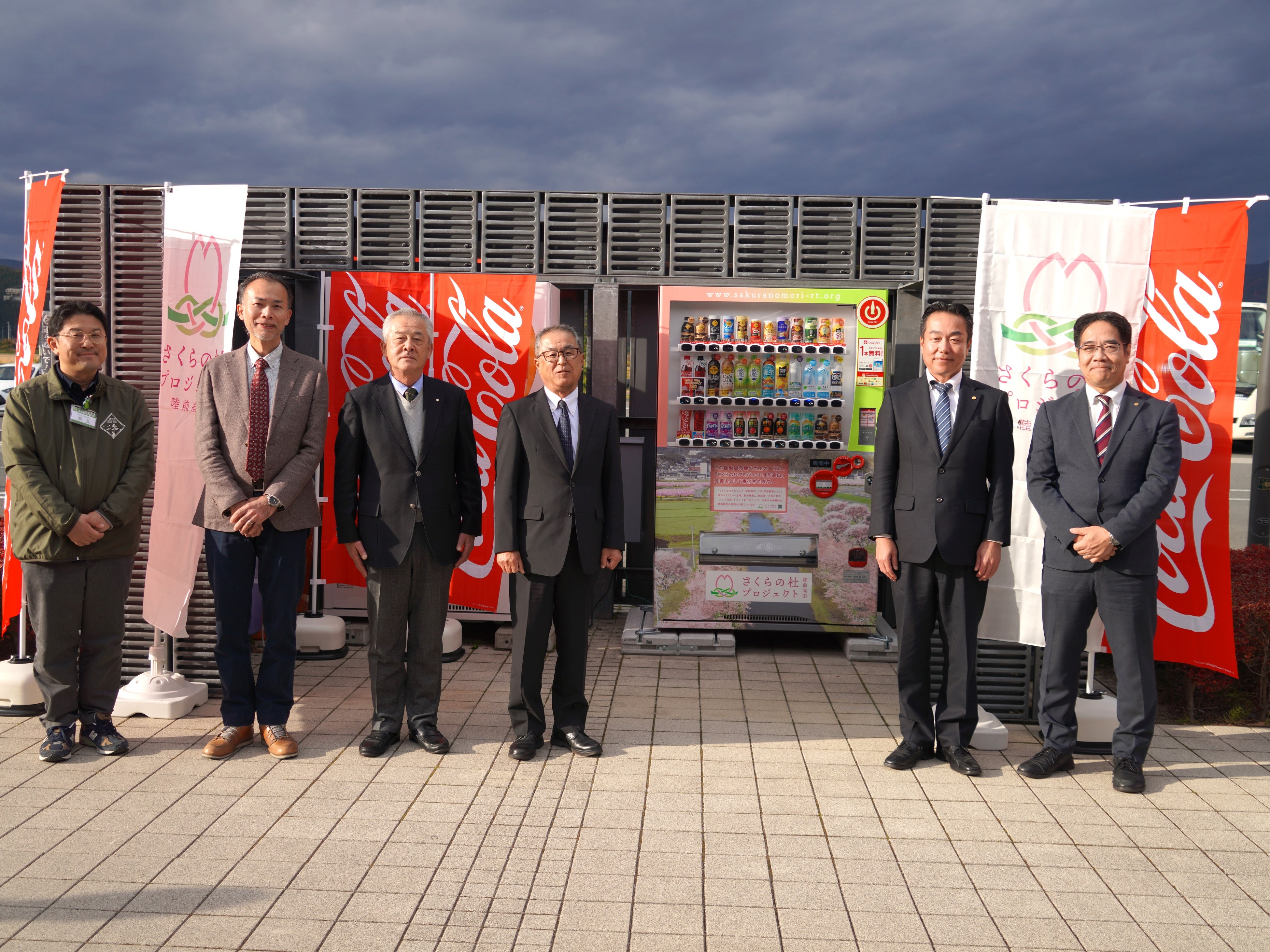 みちのくコカ・コーラボトリング、「さくらの杜プロジェクト支援自動販売機」の第一号機を設置