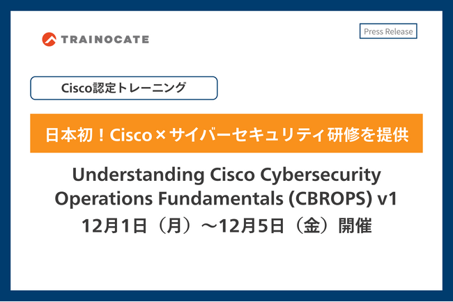 トレノケート株式会社(本社:東京都新宿区、代表取締役社長:早津 昌夫)は、Cisco認定トレーニング「Understanding Cisco Cybersecurity Operations Fundamentals (CBROPS)」を2025年12月1日より、日本で初めて提供開始します。本コースは、TCP/IPプロトコルスイートのネットワークインフラストラクチャデバイス、運用、脆弱性、基本的な情報セキュリティ概念などへの理解を深めることで、SOCにおけるアソシエイトレベルのサイバーセキュリティアナリスト職への成長を目指します。