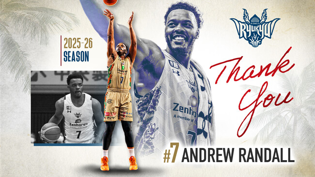 ランダル選手は、チームの緊急補強という状況の中で短期契約という形を理解したうえで即座に加入を快諾し、短い期間ながらも豊富な経験と高いプロ意識をもってチームに貢献してくれました。2013-14シーズンにプロキャリアの第一歩をキングスで踏み出したランダル選手が、12年ぶりに沖縄へ戻り、再び共に戦ってくれたことに心より感謝しております。
