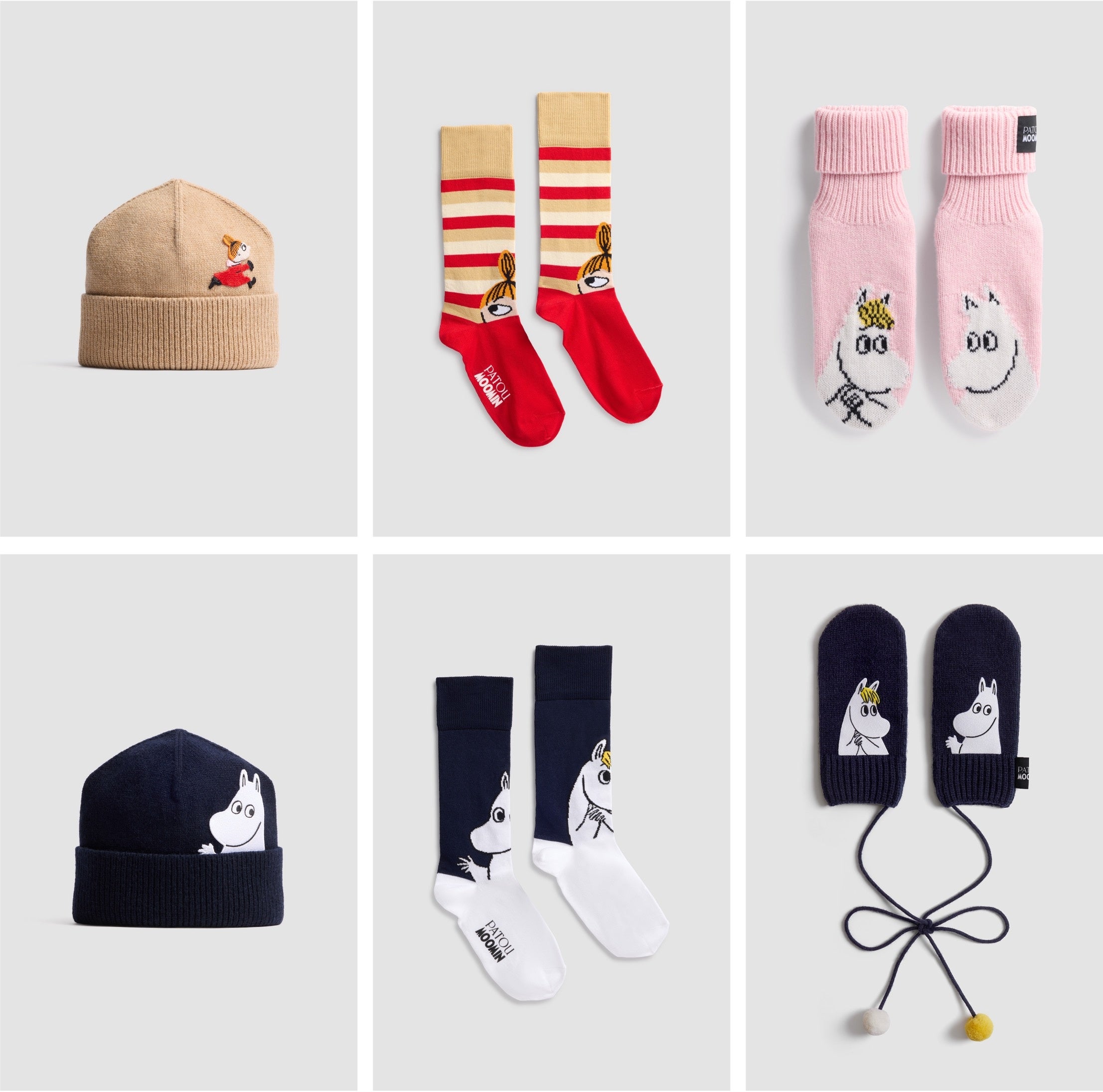 コラボレーションの中心には、人気キャラクタームーミントロール、スノークのおじょうさん、リトルミイが描かれ、それぞれのユニークで楽しい個性が各アイテムに反映されています。