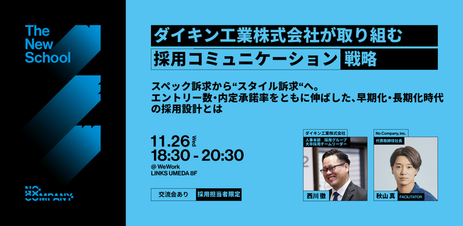 No Company、【 The New School 】ダイキン工業が取り組む「採用コミュニケーション戦略」― 11月26日(水)大阪で開催
