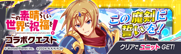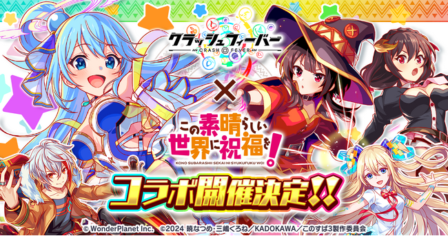 モバイルゲーム事業を行うワンダープラネット株式会社(本社:愛知県名古屋市、代表取締役社長CEO:常川友樹、東証グロース:証券コード4199、以下当社)は、iOS/Android端末向けに配信中の『クラッシュフィーバー』において、2025年11月27日(木)より、『クラッシュフィーバー』×『この素晴らしい世界に祝福を!』コラボの開催が決定したことをお知らせいたします。