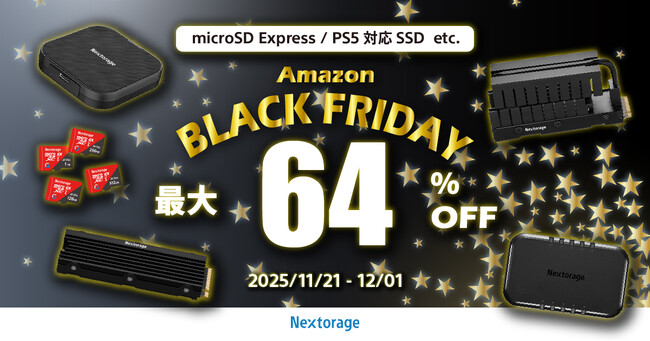 Nextorage株式会社(ネクストレージ株式会社、代表取締役:本多 克行、神奈川県川崎市)は、2025年11月21日(金) より開催されるAmazon Black Fridayおよび先行セールに参加することをお知らせいたします。