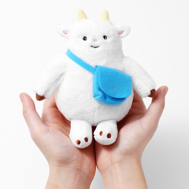 ぬいぐるみを作ったのは、「モンチッチ」で有名な老舗メーカーのセキグチさん。打合せと試作を重ね、ゴートくんのふわふわの毛並みや可愛らしいひづめを見事に形にしていただきました。ポシェットの中にはなんと、ミニ版「GOAT」が……!
