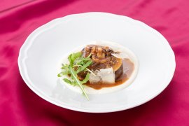 華やかなクリスマスイベントを演出するにふさわしい、このディナーコースのメインディッシュである「ハンガーステーキポルチーニクリーム カリフラワーピュレとパルメザンチーズ」は、コース提供に先駆け、12月15日(月)よりアラカルトメニューとして単品販売します。