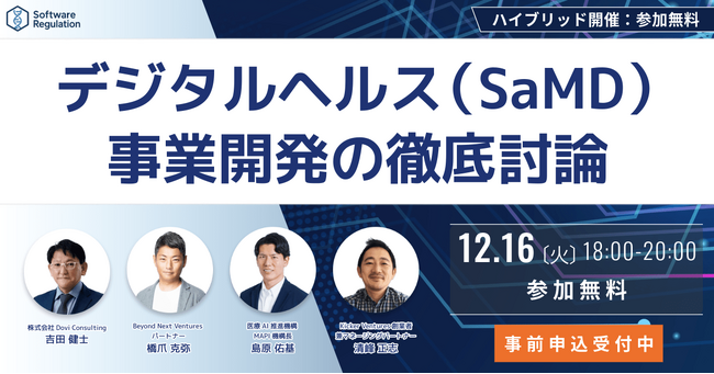 デジタルヘルスの中でも、特にSaMD領域は事業成長が見込まれていますが、事業戦略に関するノウハウは不足しがちです。本イベントでは、SaMD領域の事業成長におけるこれまでの「成功」と「失敗」と未来について徹底議論します。
