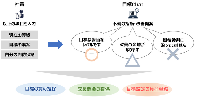 目標Chatは、社員が作成した目標案を洗練させる「壁打ち役」として機能します。