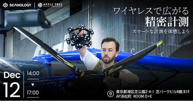 APPLE TREE株式会社(所在地:大阪府大阪市/代表取締役社長:朴秀明)は、SCANOLOGYとの共催による「ワイヤレス精密計測」をテーマとしたOPEN HOUSEイベントを、2025年12月12日(金)に東京都港区・AP浜松町にて開催いたします。