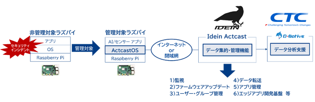 今回開発するエッジAIソリューションは、Idein社のエッジAIプラットフォーム「Actcast」と、CTCのデータ活用伴走サービス「D-Native」を組み合わせ、工場内のデータを安全かつ効果的な活用を支援するものです。