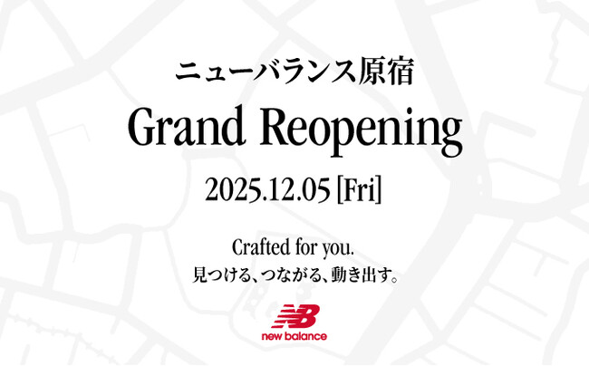 株式会社ニューバランスジャパン(本社所在地:東京都千代田区、代表取締役社長 久保田伸一)は、2016年11月5日に日本初となるフラッグシップストアとしてオープンした「ニューバランス原宿」を、10年目を迎える今、大規模な改装を実施し、2025年12月5日(金)11時にグランドリニューアルオープンいたします。ニューバランスのフラッグシップストアは、現在アメリカ・ボストン、イギリス・ロンドン、そして日本の原宿の世界で3店舗のみとなり、ニューバランスのクラフトマンシップやイノベーション、世界観をお客様に感じていただくことができる特別な店舗です。