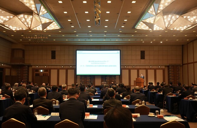SocioFuture株式会社(本社:東京都港区、代表取締役 社長執行役員:菅原 彰彦、以下「当社」)は、2025年11月12日(水)に帝国ホテル 東京(東京都千代田区)にて「第18回トップマネジメントセミナー」を開催いたしました。本セミナーには、全国の金融機関よりエグゼクティブなど102名にご参加いただき、「地域活性化に向けた民間企業の取り組みと金融の役割」をテーマに、株式会社ジャパネットホールディングス 代表取締役社長 兼 CEOの高田 旭人氏および、元金融庁長官であり当社顧問の栗田 照久による講演が行われました。