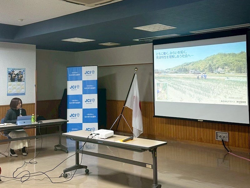 エンビプログループで障がい福祉サービス事業を担う株式会社アストコ(本社:長野県松本市、代表取締役社長:野村智恵美、以下「アストコ」)は、2025年11月15日(土)に一般社団法人 松本青年会議所 グローバル共生委員会が開催した「ユア・ビジョン講演会 ともに働く、未来を拓く 発達特性を理解し合う社会へ」に代表の野村智恵美が講師として登壇し、日本の障害者雇用の必要性からアストコの取り組み等を紹介しました。