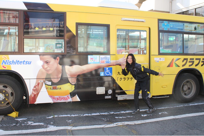 当社の陸上競技部所属の選手をデザインしたラッピングバスを、北九州市内の西鉄バス路線で運行開始しました。
