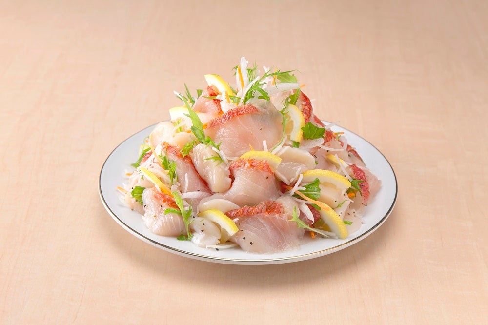 『金目鯛と帆立のカルパチョ風サラダ』(税込735円/100g)