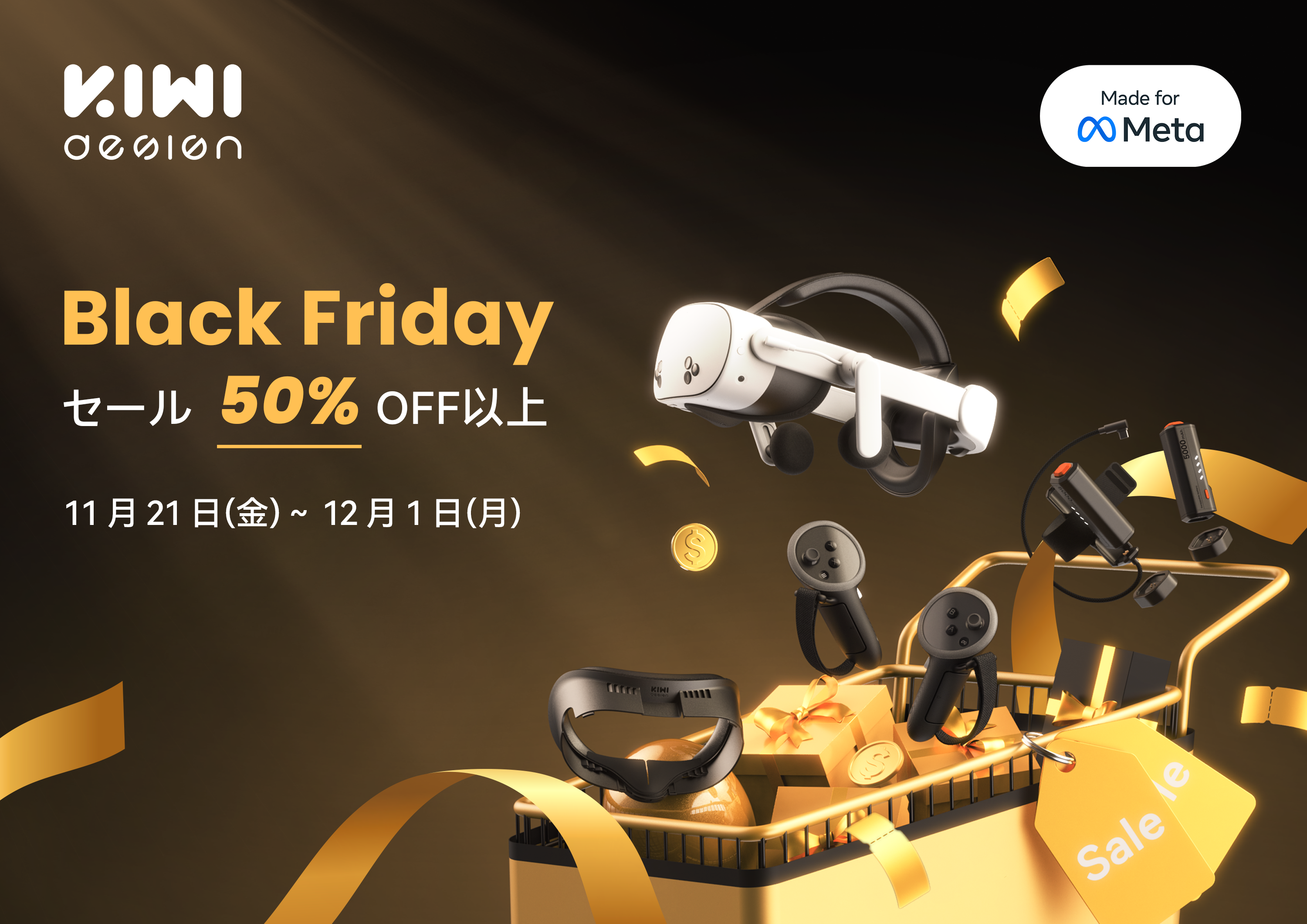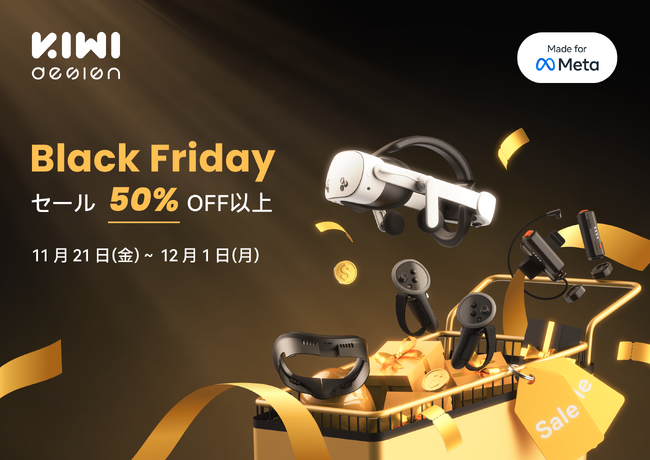 VRアクセサリーブランド KIWI design(本社:KIWIDESIGN(HONGKONG)LIMITED、以下 KIWI design)は、2025年ブラックフライデーに合わせ、Meta QuestシリーズおよびPlayStation(R)5向けアクセサリーを対象とした大規模セールを開催いたします。期間中は、同社の人気プロダクトをはじめとした多数のVR関連アイテムが、50%OFF以上のスペシャルプライスで提供されます。