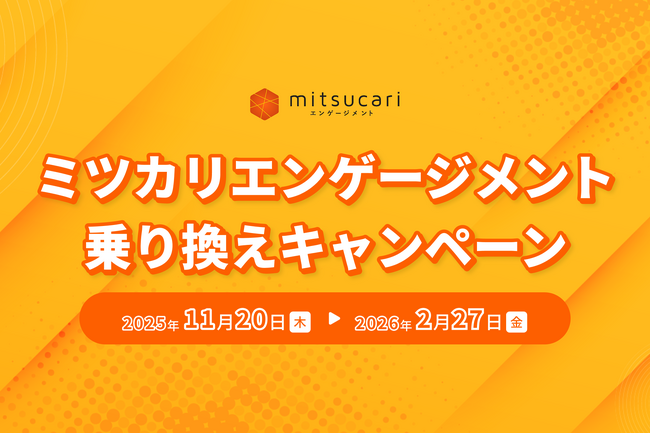 ひとりひとりの性格や相性を理解・分析して個と組織の力を最大化するHR Tech「ミツカリ」を提供する株式会社ミツカリ(本社:東京都渋谷区、代表取締役社長CEO:表 孝憲)は、2025年11月20日(木)より、他社エンゲージメントサーベイから「ミツカリエンゲージメント」へ乗り換える企業様を対象としたキャンペーンを開始いたしましたので、お知らせいたします。