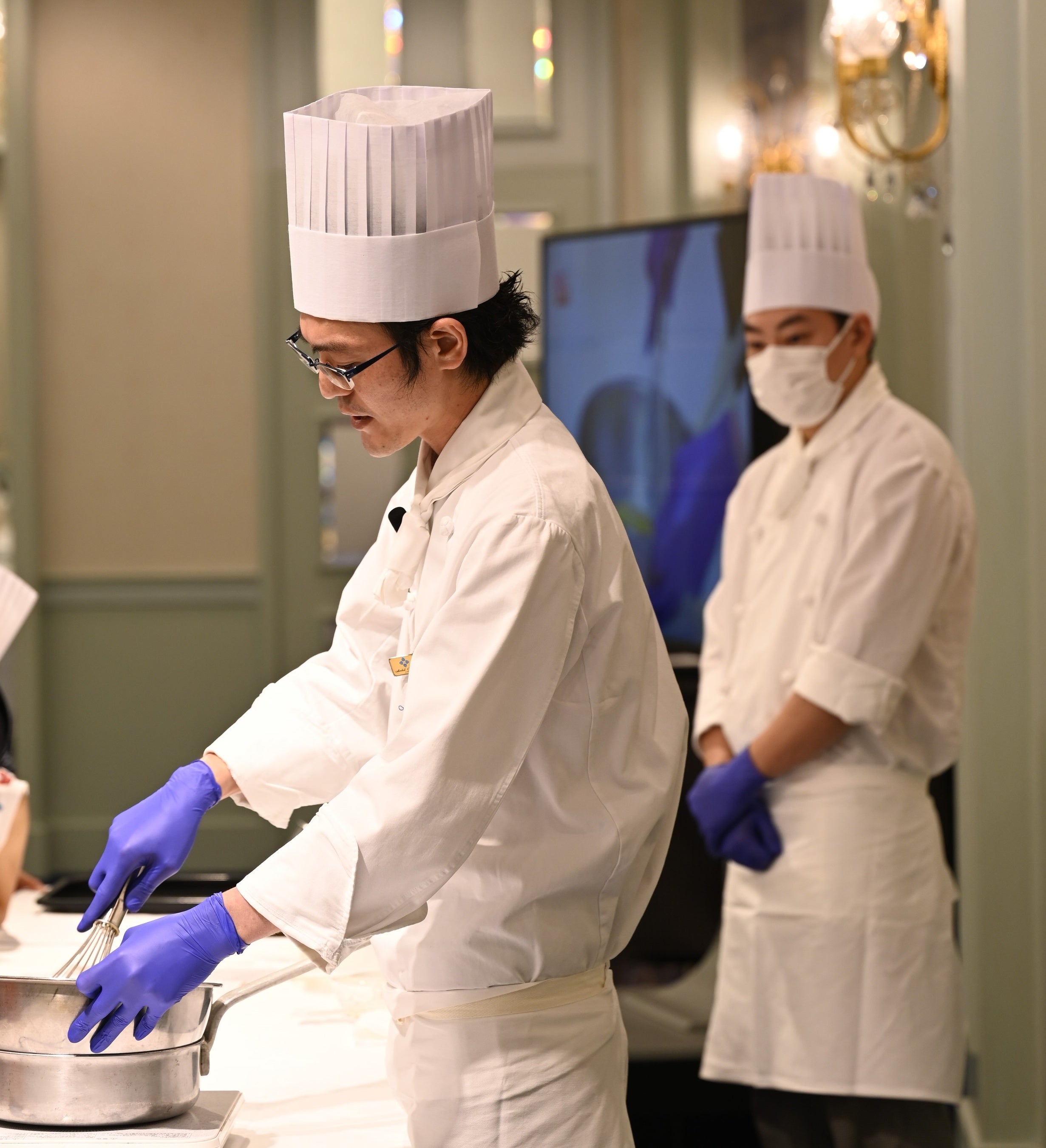 これから迎えるバレンタインを前に、美しい石畳をモチーフにした『サンセバスチャンケーキ』をテーマに、ホテルならではの技を披露します。