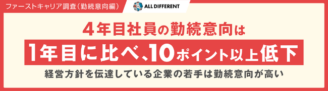 【調査】4年目社員の勤続意向は、1年目に比べ10ポイント以上低下。経営方針を伝達している企業の若手は勤続意向が高い