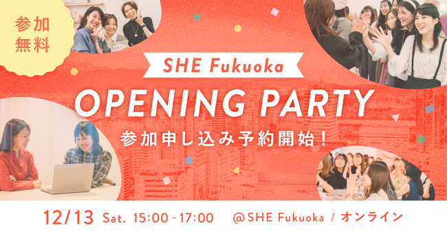 「SHE Fukuoka」オープニングパーティーの開催が12月13日(土)に決定!参加申し込みが本日よりスタート