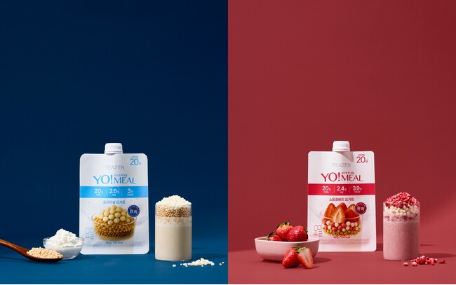 今回発売された「TEAZEN ヨミール」は、オリジナルヨーグルト味とストロベリーヨーグルト味の2種類。オリジナルヨーグルトは濃厚でさっぱりとした地中海風ギリシャヨーグルトの味わい、ストロベリー味はフリーズドライ苺を加えた爽やかな風味が特徴。また、噛み応えのあるトッピングが加わり、満足感のある食感も楽しめます。