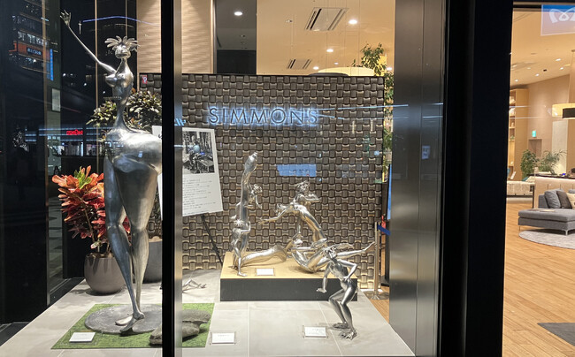 これは、シモンズ株式会社(本社:東京都港区芝4-1-23 三田NNビル24階、代表取締役社長:二ツ谷一弘)が、旗艦店であるシモンズギャラリー東京の開設7周年を記念した「中嶋大道の河童たち」展の一連の作品。長野県安曇野市在住のステンレス彫刻家中嶋大道氏(81歳)が“河童”をテーマに制作したもので、大自然のもとで生まれた河童たちは、氏自身の少年時代の記憶や、誰もが心に持つ“ふるさとの原風景”への想いが込められています。