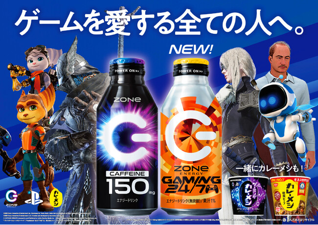 「ZONe ENERGY(ゾーン エナジー)」は、株式会社ソニー・インタラクティブエンタテインメントの「PlayStation(R)」、日清食品株式会社の即席カップライス「日清カレーメシ」シリーズとコラボレーションした「ZONe ENERGY GAMING 24/7」を2025年11月25日(火)より全国で発売します。