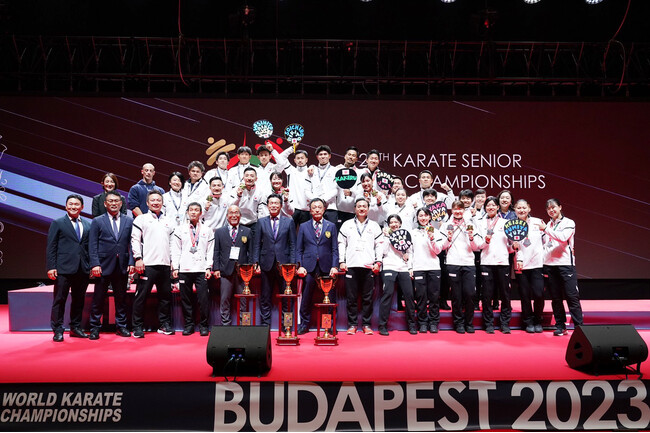 2023年大会の表彰セレモニー。世界の karate を牽引する選手が集結。