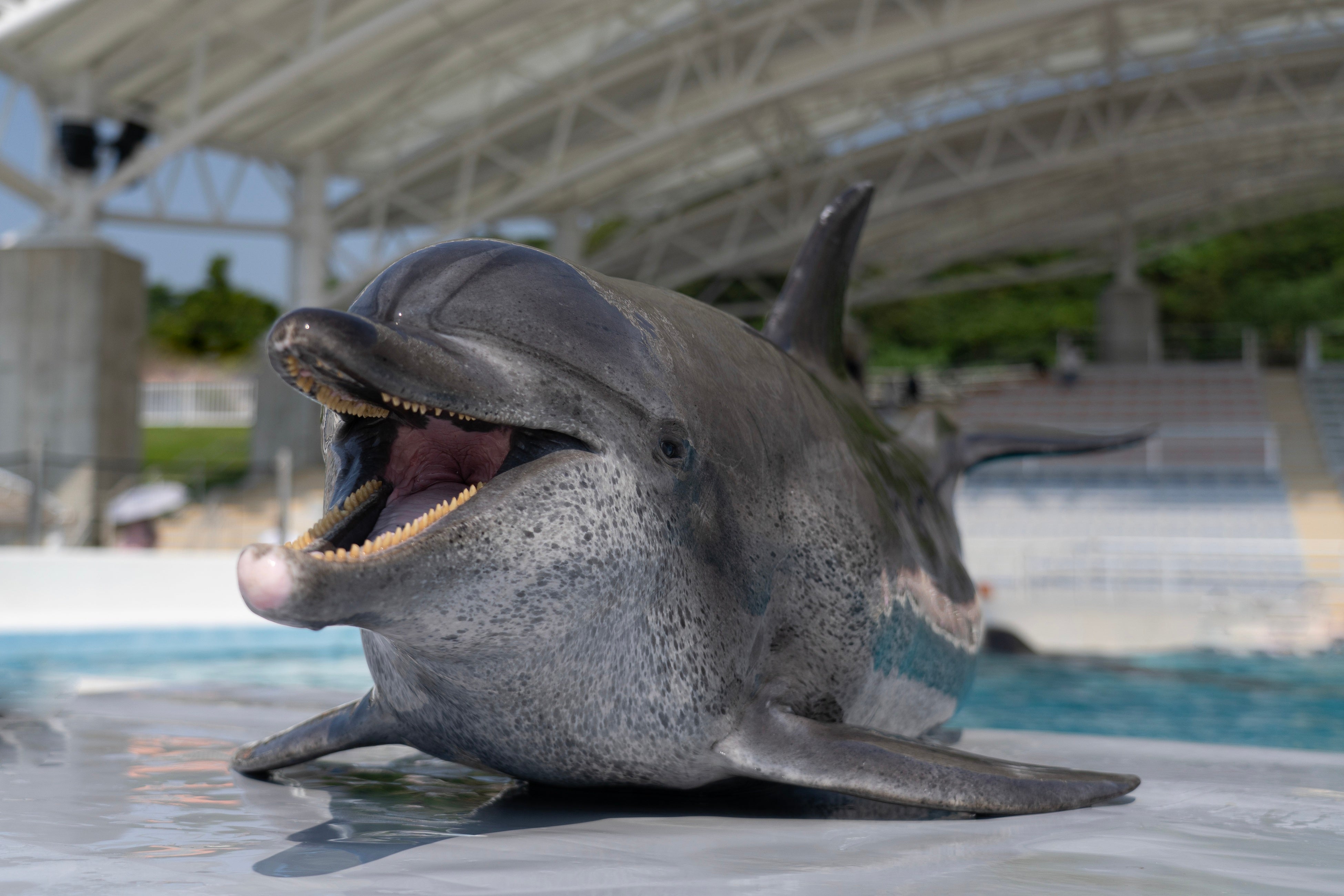 ジンベエザメの「ジンタ飼育30年」とミナミバンドウイルカの「オキちゃん飼育50年」を記念した