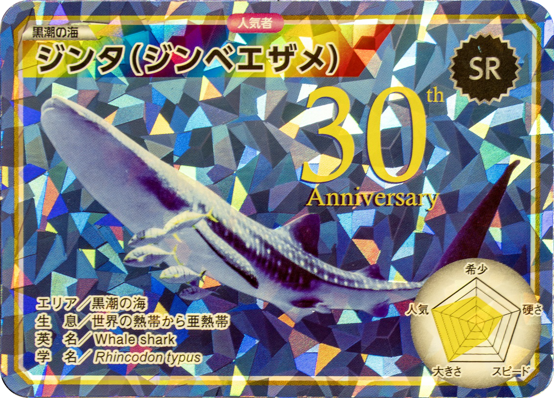 期間中毎日16:00以降にご来館のお客様に海の生き物たちを楽しく紹介した「水族館オリジナルトレーディングカード」をプレゼント いたします。全32種類のカードの中には、ジンベエザメ「ジンタ飼育30年」、ミナミバンドウイルカ「オキちゃん飼育50年」を記念したレアカードもございます。