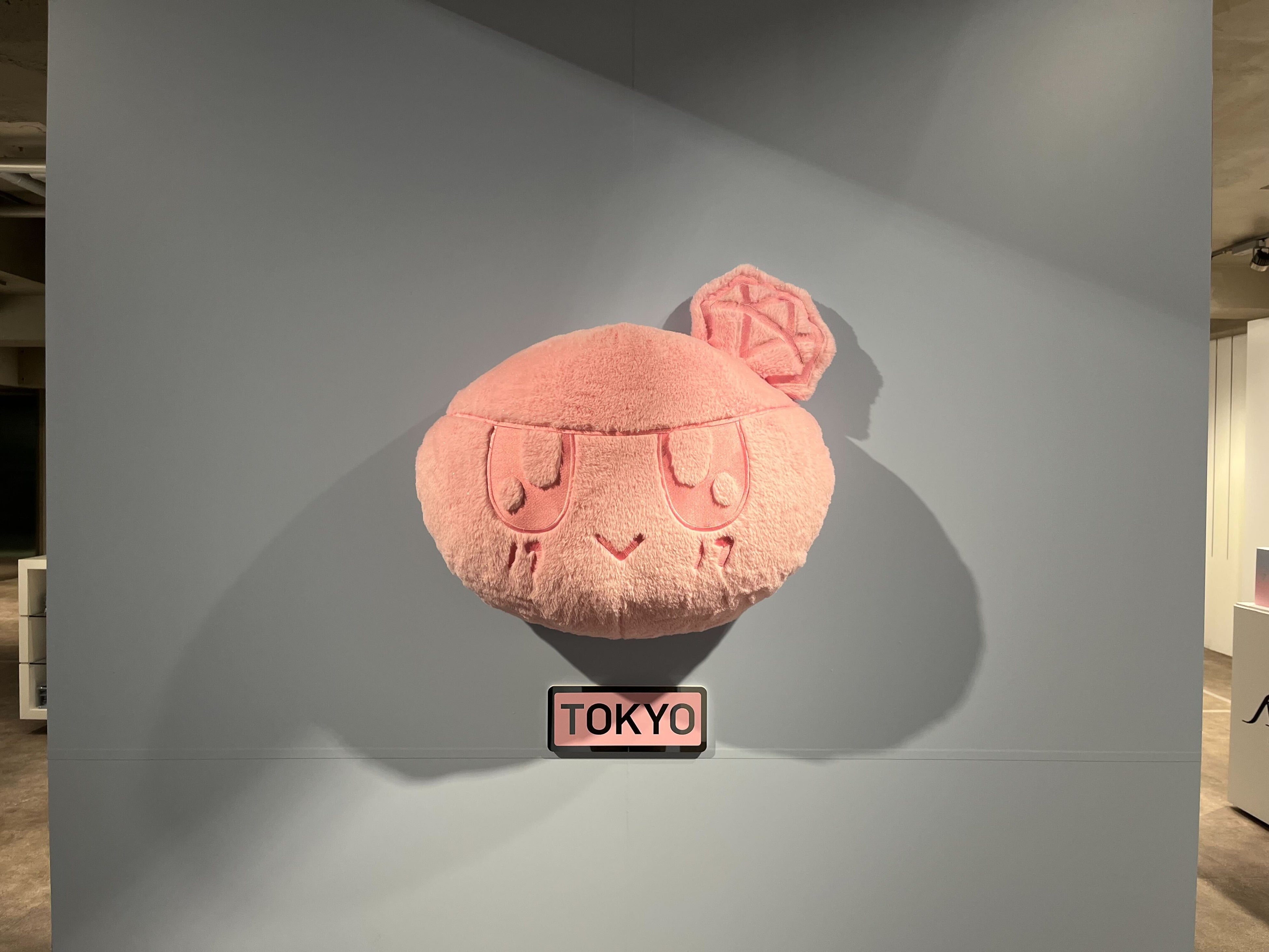 店内を入ると今回の公演のメンバーの肖像がずらりと並び、奥にはSEVENTEENのミュージックビデオが壁一面に映し出されています。そこから店内を少し入ると、今回のポップアップストアのポイントとなるフォトスポットが。SEVENTEENのOFFICIAL LIGHT STICKに着眼した キャラクターのボンボンイの今回のツアー商品である「LOCAL BONGBONGEE PLUSH KEYRING」が巨大になって壁面に登場。商品に連動して公演の開催都市ごとに色が異なる仕様になっています。(東京はピンク色)