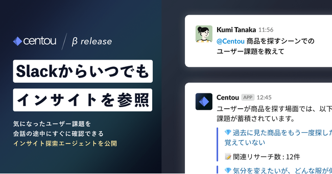 国内初※1のインサイトマネジメントSaaS「Centou」が、生成AIを活用しSlackからユーザーインサイトを探せる「インサイト探索エージェント β版」を公開