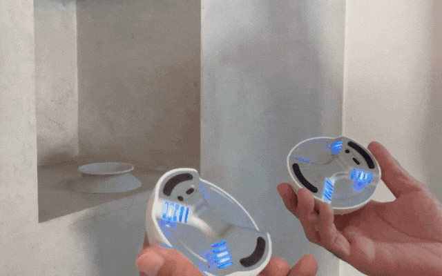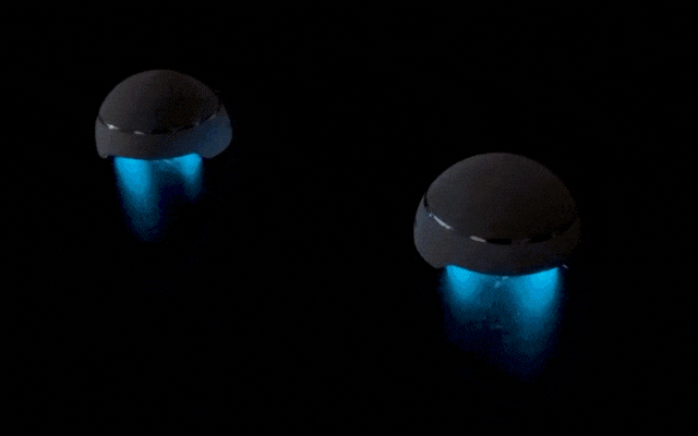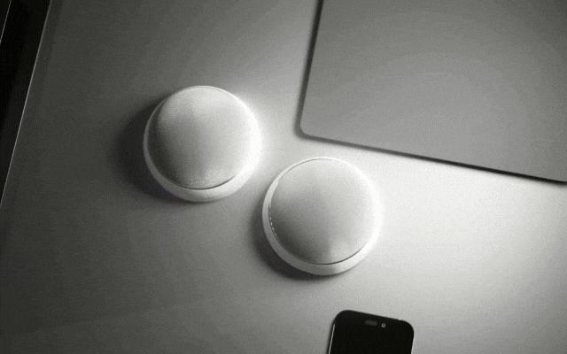 2つのスピーカーがマグネットでピタッと合体し、美しく人工的な球体に。