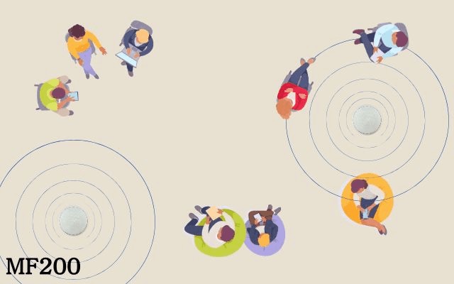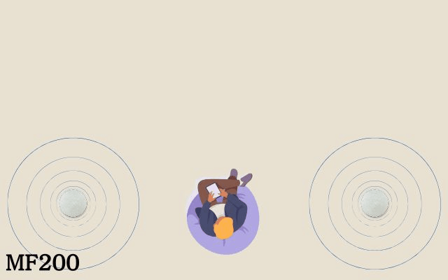 MF200ならではの半球形デザインを活かした360°サウンドにより、どこに置いても均一で自然な音が広がる。