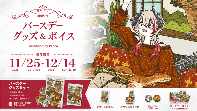 11月7日に誕生日を迎えた黒燿リラのバースデーグッズの詳細を公開するとともに、公式オンラインショップ「VEE Official Shop」にて受注販売を開始しました。