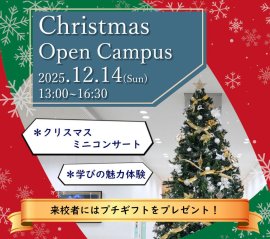 クリスマス特別プログラムとして、学生による「クリスマスミニコンサート」を行うほか、クリスマス限定「一緒に撮ろう!チェキイベント」や、限定プチギフトのプレゼント、クリスマススペシャルメニューを無料で味わえる学食体験も行う。