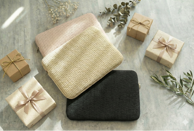 「PCケース」としての保護機能はもちろん、「ファッションの一部として持ち歩きたくなる」デザイン性を追求。無機質になりがちなパソコン周辺機器を、ナチュラルで優しい雰囲気に包み込みます。そのやわらかな雰囲気は、クリスマスプレゼントや大切な方へのギフトとしても最適です。