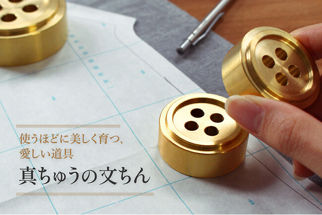 職人の精密な技術から生まれたこの文ちんは、ボタンをモチーフにしたやさしいフォルムが特徴です 。洋裁やハンドメイドの時間をより上質で快適なものにするのはもちろん、ブックストッパーやペーパーウェイトとしてもお使いいただけます 。