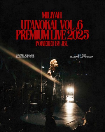 ハーマンインターナショナル株式会社(本社:東京都千代田区、代表取締役:桑原拓磨)は、アメリカ カリフォルニア発祥の世界最大級のオーディオブランドであり、日本国内においてポータブルスピーカー販売台数7年連続No.1※を誇る「JBL」が、2025年12月3日(水)、12月8日(月)にビルボードライブ東京および12月16日(火)にビルボードライブ横浜で開催される「加藤ミリヤ 歌の会 vol.6 Premium Live 2025 Powered by JBL」に協賛することをお知らせいたします。