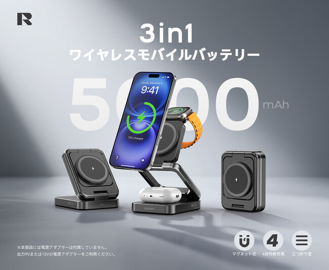 【RORRY】ブラックフライデー破格!今なら 4,114円・史上最安値|5000mAh×3in1折りたたみ式ワイヤレス充電スタンドD17が登場
