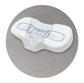 従来の「生感まくら」は、独特なもっちり感が多くの方に支持されている一方、マジボイスに届いた『横向きになると首に圧迫感を感じる』『横向きになると耳が密封された感じになる』といったお客様の声をもとに、従来のフラット形状に加え新たに立体形状の3Dまくらが登場!面全体に施された小さな溝で通気性を高め、中央・左右に「くぼみスポット」を設けたことで、仰向け時の頭部の安定や寝返りした横向きの状態時に生じる耳への圧迫を軽減します。また、首のS字カーブを支えるアーチ形状が気道を広げることにより、睡眠時の呼吸をスムーズにさせ“いびき予防”にも期待できます。高さ調整シート(1.5cm厚)も付属しており、お好みの高さに調整いただけます。