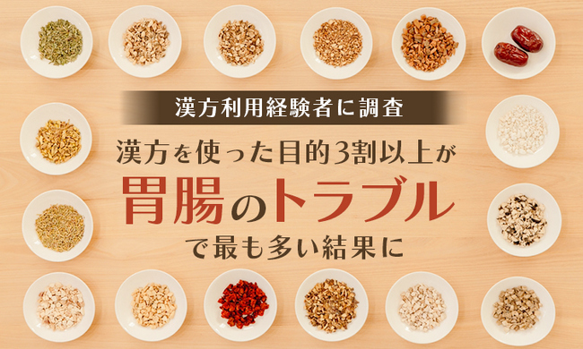 【漢方利用経験者に調査】漢方を使った目的3割以上が「胃腸のトラブル」で最も多い結果に