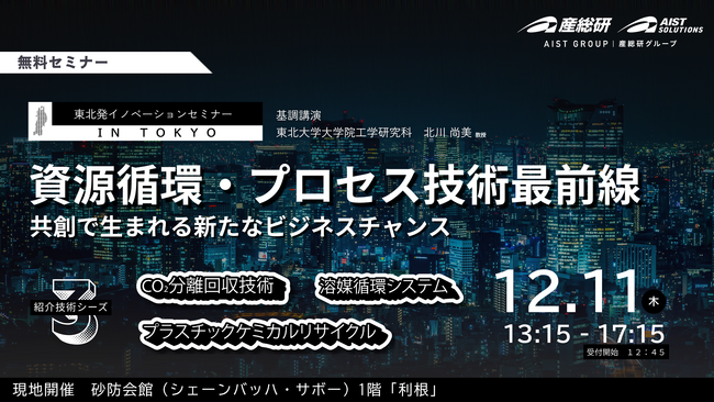 【12月11日/東京リアルセミナー・無料】資源循環・プロセス技術の最前線 ― 共創で生まれる新たなビジネスチャンス