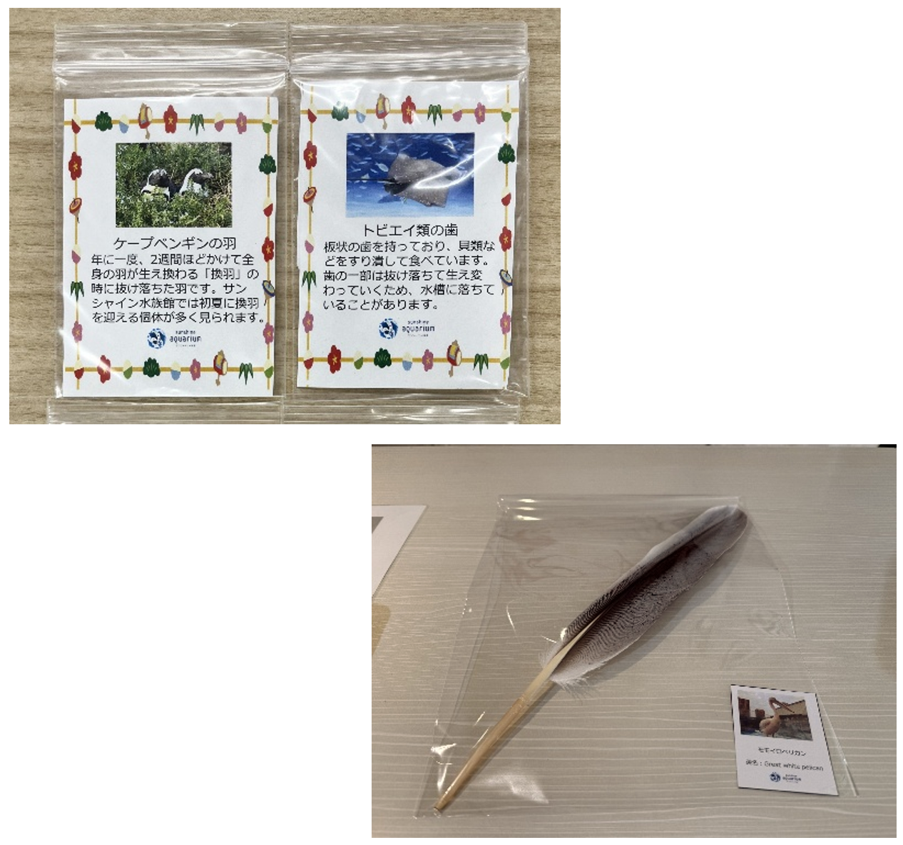 また、すべての福袋には、“エイの歯”や“ペンギンの羽”など、当館の生き物たちが落としたマニアックな落とし(お年)玉が1種類入っています。エイは、一部地域で「エイ(良い)正月を迎える」という意味で特別な日に食されていると言われています。また、ペンギンはペアになると一生添い遂げると言われており、「夫婦円満のお守り」代わりになるかもしれません。