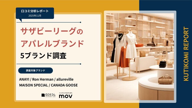 株式会社サザビーリーグが展開するアパレルブランド5ブランド「ANAYI」「Ron Herman」「allureville」「MAISON SPECIAL」「CANADA GOOSE」の口コミを独自調査