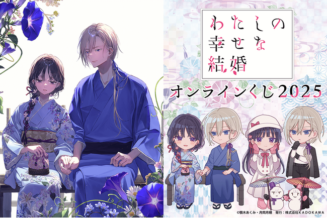 株式会社KADOKAWA(本社:東京都千代田区、取締役 代表執行役社長 CEO:夏野 剛、以下 KADOKAWA)は、運営するオンラインくじサービス「くじ引き堂」において、富士見L文庫『わたしの幸せな結婚』の豪華賞品が手に入る<『わたしの幸せな結婚』オンラインくじ2025>を、2025年12月4日(木)12時より販売します。